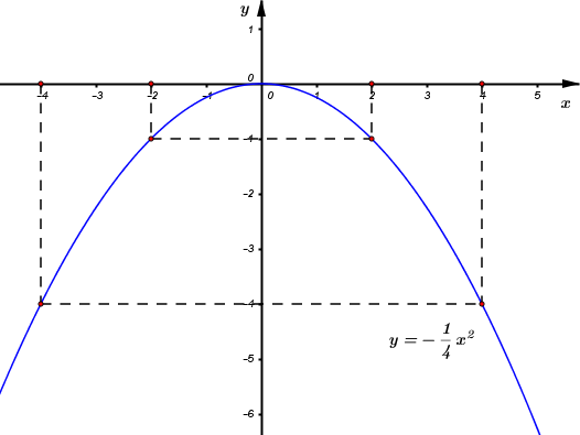 1) Vẽ đồ thị \(\left( P \right)\) của hàm số \(y = - \frac{1}{4}{x^2}.\)
