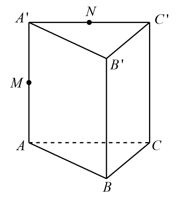 Cho lăng trụ tam giác \(ABC.A'B'C'\) có thể tích bằng \(V.\) Điểm \(M,\,\,N\) lần lượt là trung