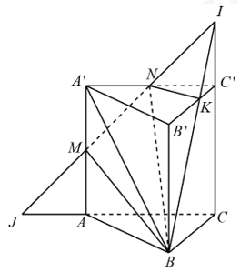 - Tìm thiết diện của \(\left( {BMN} \right)\) với hình lăng trụ.