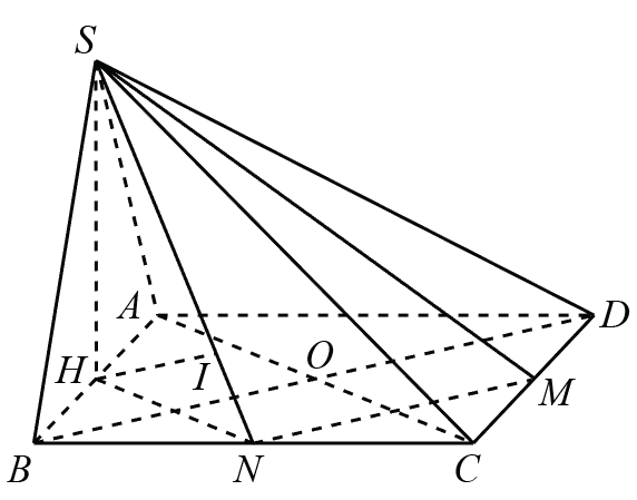 \(d\left( {SM,BD} \right) = d\left( {BD,\left( {SMN} \right)} \right)\) với \(N\) là trung điểm của \(BC.\)