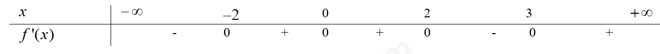 Cho hàm số \(y = f(x)\) có đạo hàm trên \(\mathbb{R}\)và \(f'(x) = \,({x^2} - 3x).({x^3} - 4x)\). Hàm số