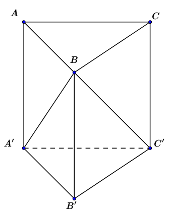Cho khối lăng trụ tam giác \(ABC.A'B'C'\) có thể tích \(V\). Thể tích của khối chóp \(B.ACC'A'\) bằng: