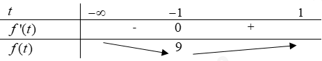 Lập bảng biến thiên của hàm số \(y = f(t)\)trên khoảng đang xét.