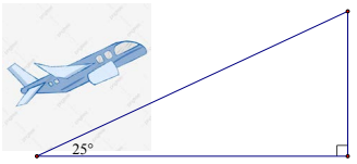 Một máy bay cất cánh theo phương có góc nâng là 25° so với mặt đất. Hỏi muốn đạt độ cao