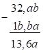 Biết rằng \(\overline{32,ab} -\overline{1b,ba}= \overline{13,6a} \). Tính \(a\times b\)?