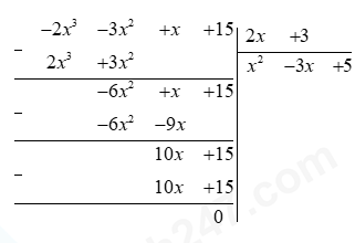 \(\left( {2{x^3} - 3{x^2} + x + 15} \right):\left( {2x + 3} \right)\)