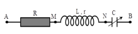 Đặt điện áp \(u = 60\sqrt 2 \cos \left( {300t + \frac{\pi }{3}} \right)\left( V \right)\) vào hai đầu đoạn mạch AB như hình bên, trong đó \(R = 180\Omega \) và điện dumg C của tụ điện thay đổi được. Khi \(C = {C_1}\) thì điện tích của bản tụ điện nối vào N là \(q = 5\sqrt 2 {.10^{ - 4}}\cos \left( {300t + \frac{\pi }{6}} \right)\left( C \right)\). Trong các biểu thức, t tính bằng s. Khi \(C = {C_2}\) thì điện áp hiệu dụng giữa hai đầu R đạt giá trị cực đại, giá trị cực đại đó bằng