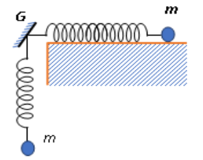 Hai con lắc lò xo giống hệt nhạu được gắn vào điểm G của một giá cố định như hình bên.