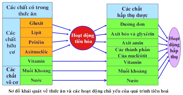 Dựa vào sự biến đổi các chất trong hệ tiêu hóa.