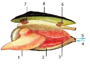 Hãy chú thích vào hình vẽ sơ đồ cấu tạo ngoài trai sông.Cấu tạo ngoài của trai