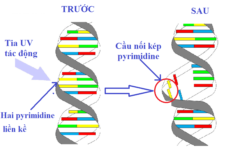 Dạng sai hỏng ADN phổ biến khi chiếu tia UV là: