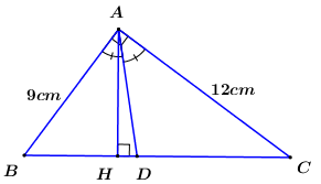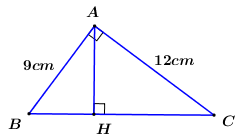 Cho tam giác \(ABC\) vuông tại \(A\), đường cao \(AH\). Biết \(AB = 9\,\,cm,\,\,AC = 12\,\,cm\).