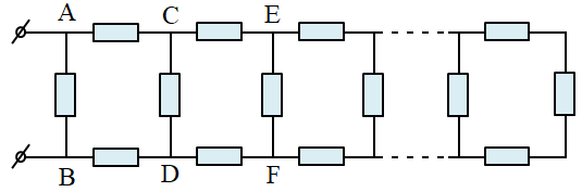 Có mạch điện dài vô hạn, mỗi điện trở trong một cạnh của một ô là r. Tính điện trở