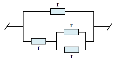Có một số điện trở \(r = 5\,\,\Omega \). Hỏi phải dùng tối thiểu bao nhiêu điện trở r để mắc thành mạch có điện trở tương đương \(3\,\,\Omega \).