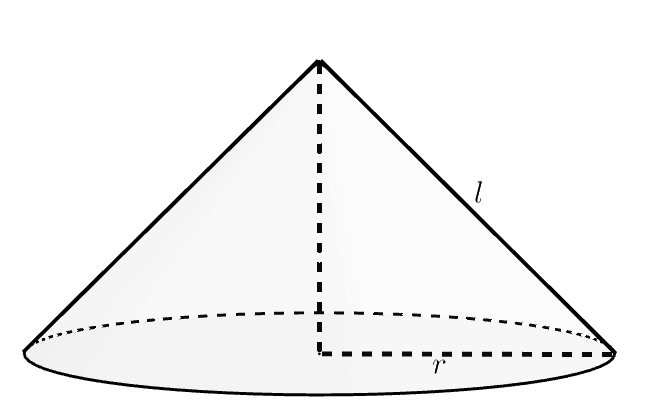 Diện tích xung quanh của hình nón: \({S_{xq}} = \pi rl\) với \(r\)là bán kính đáy, \(l\) là đường sinh.
