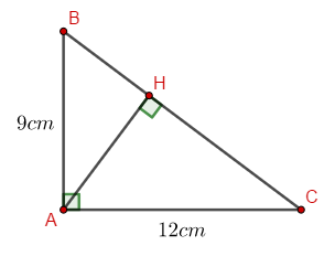 Cho tam giác \(ABC\) vuông tại \(A\) có các cạnh \(AB = 9\,\,cm;\,\,AC = 12\,\,cm\).