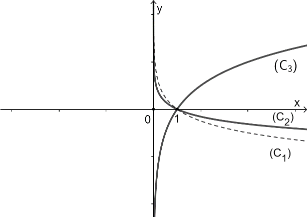 Cho các hàm số \(y = {\log _a}(x),y = {\log _b}(x),y = {\log _c}(x)\) (với \(a,b,c\)là các số thực dương khác 1) có đồ thị lần lượt là (C1), (C2), (C3) như hình vẽ: