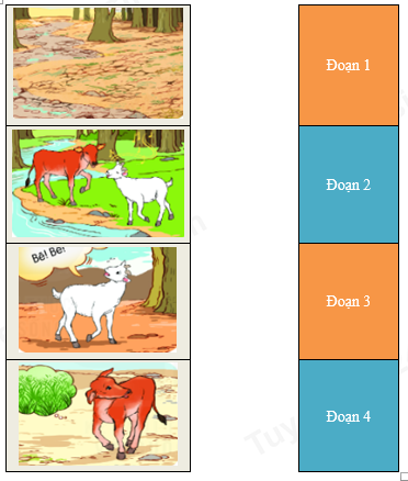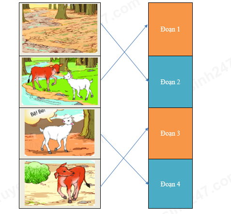 Dựa vào câu chuyện Gọi bạn, em hãy nối mỗi bức tranh với đoạn tương ứng theo đúng thứ tự.