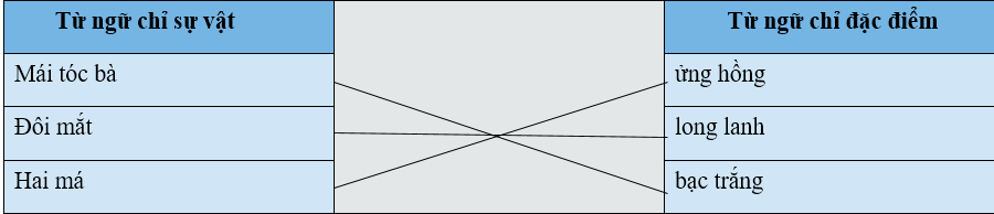 Nối từ ngữ chỉ sự vật với từ ngữ chỉ đặc điểm cho phù