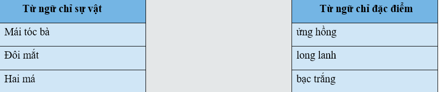 Nối từ ngữ chỉ sự vật với từ ngữ chỉ đặc điểm cho phù hợp:
