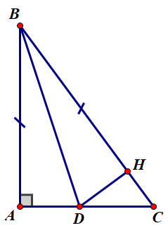 Cho tam giác \(ABC\) vuông tại \(A\). Tia phân giác của góc \(B\) cắt cạnh \(AC\) tại \(D\). Trên cạnh \(BC\) lấy điểm \(H\) sao cho \(BH = BA\).