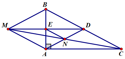 Cho tam giác \(ABC\) vuông tại \(A\). Gọi \(D,E\) lần lượt là trung điểm của \(BC\) và \(AB.\,\,M\) là điểm đối xứng với \(D\) qua \(E\).