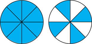 Tử số là số phần được tô màu, mẫu số là số phần bằng nhau được chia ở mỗi hình.