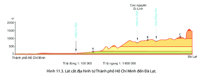 Quan sát lát cắt địa hình trên và cho biết: