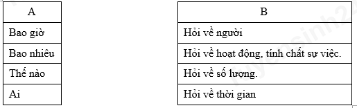 Nối đại từ ở cột A với nội dung ở cột B cho phù