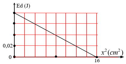Một con lắc lò xo có vật nhỏ khối lượng 0,1kg dao động điều hòa trên trục Ox với phương trình \(x = A.cos\omega t\left( {cm} \right)\). Đồ thị biểu diễn động năng theo bình phương li độ như hình vẽ. Lấy \({\pi ^2} = 10\). Tốc độ trung bình của vật trong một chu kì là