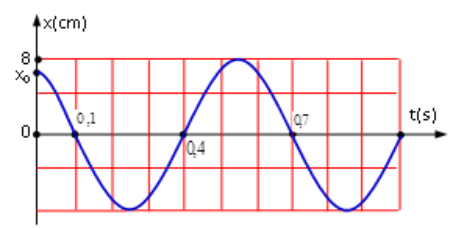Một vật dao động điều hòa với phương trình \(x = A.cos\left( {\omega t + \varphi } \right)\). Hình bên là đồ thị biểu diễn sự phụ thuộc ly độ x của vật theo thời gian t. Xác định giá trị ban đầu của \(x = {x_0}\) khi \(t = 0\).