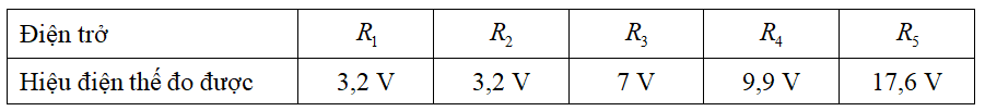 b) Tuy nhiên, khi một học sinh dùng vôn kế trên lần lượt đo hiệu điện thế trên các điện trở lại thu được kết quả ghi trong bảng sau: