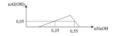 Một dung dịch X có chứa các ion: x mol H+, y mol Al3+, z mol SO42- và 0,1 mol Cl-. Khi nhỏ từ từ đến dư dung dịch NaOH vào dung dịch X, kết quả thí nghiệm được biểu diễn trên đồ thị sau: