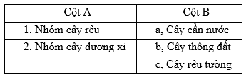 Nối tên nhóm cây ở cột A với các tên cây ở cột B tương ứng:Lựa chọn đúng