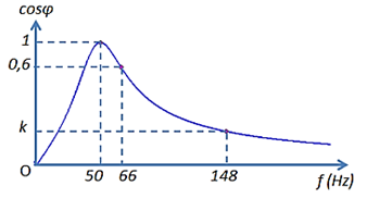 Đặt vào hai đầu đoạn mạch không phân nhánh một điện áp xoay chiều \(u = U\sqrt 2 \cos \left( {2\pi ft} \right){\mkern 1mu} {\mkern 1mu} \left( V \right)\) (U không đổi còn f thay đổi được). Hình bên là đồ thị biểu diễn sự phụ thuộc của hệ số công suất \(\cos \varphi \) của mạch vào tần số f. Giá trị của k gần nhất với giá trị nào sau đây?