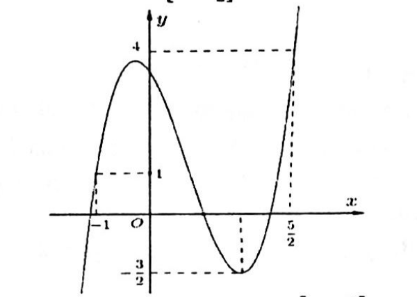 Cho hàm số \(y = f(x)\)xác định, liên tục trên \(\left[ { - 1;\,\,\dfrac{5}{2}} \right]\) và có đồ thị là đường cong như hình vẽ .