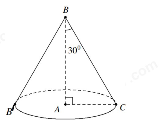 . Cho hình nón có bán kính đáy bằng 5 và góc ở đỉnh bằng \({60^0}\). Diện tích xung quanh của