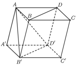 Cho khối hộp \(ABCD.A'B'C'D'\) có thể tích \(V\). Tính theo \(V\) thể tích khối đa diện \(ABDD'B'\).