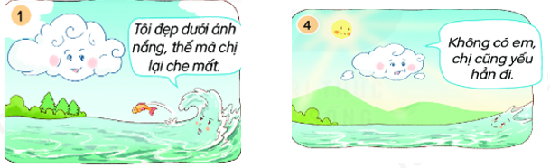 Dựa vào câu chuyện Hồ nước và mây, em hãy kể lại nội dung của hai bức tranh sau: