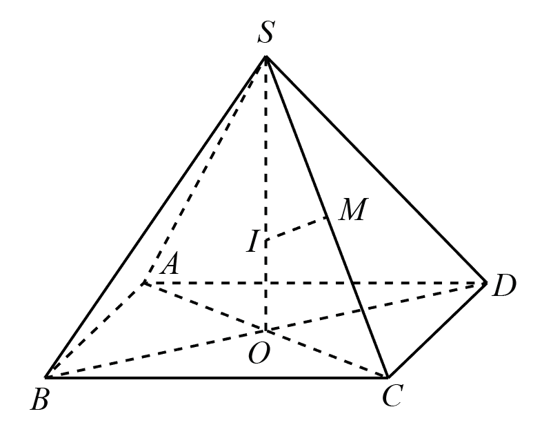 Cho hình chóp tứ giác đều \(S.ABCD\) có cạnh đáy bằng \(a\), góc tạo bởi cạnh bên và mặt
