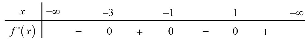 Cho hàm số \(f\left( x \right)\), bảng xét dấu của \(f'\left( x \right)\) như sau Hàm số \(y = f\left(