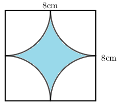 Diện tích phần tô màu bằng diện tích hình vuông cạnh 8cm trừ đi diện tích của hình tròn bán kinh 4cm.