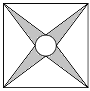 Lấy diện tích hình vuông trừ đi diện tích 4 hình tam giác và diện tích hình tròn.