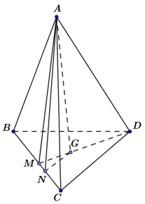 Đặt \(\angle AGN = \alpha \). Sử dụng định lí cos trong tam giác \(AGN\) để tính được góc \(\alpha \).