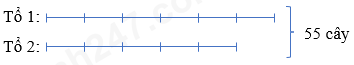 Lập sơ đồ bài toán nếu mỗi tổ trồng thêm 5 cây, tính được số cây tổ 1 (hoặc tổ 2) trồng được sau khi thêm, rồi tính số cây thực tế tổ đó trồng được, sau đó tính số cây tổ còn lại trồng được.