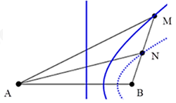 Trên mặt chất lỏng có hai nguồn sóng cùng tần số, cùng pha đặt tại hai điểm A và B. Cho bước sóng do các nguồn gây ra là \(\lambda = 5cm\). Trên nửa đường thẳng đi qua B trên mặt chất lỏng, hai điểm M và N (N gần B hơn), điểm M dao động với biên độ cực đại, N dao động với biên độ cực tiểu, giữa M và N có ba điểm dao động với biên độ cực đại khác. Biết hiệu \(MA-NA = 1,2cm\). Nếu đặt hai nguồn sóng này tại M và N thì số điểm dao động với biên độ cực đại trên đoạn thẳng AB là