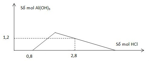 Cho từ từ dung dịch HCl vào dung dịch chứa a mol Ba(AlO2)2 và b mol Ba(OH)2. Số mol Al(OH)3 tạo thành