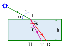 Tách ra một chùm hẹp ánh sáng Mặt Trời, cho rọi xuống mặt nước của một bể bơi. Chùm sáng đi vào trong nước tạo ra ở đáy bể một dải sáng có màu từ đỏ đến tím. Đây là hiện tượng