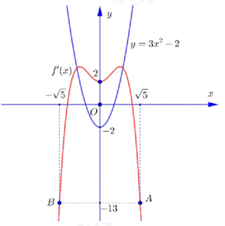 Vẽ đồ thị hàm số \(y = f'\left( x \right)\) và \(y = 3{x^2} - 2\) trên cùng một trục tọa độ.