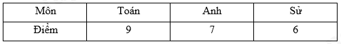 Trong kì thi, bạn Xuân Hương thi bốn môn Toán, Văn, Anh, Sử. Xuân Hương đã thi ba môn và được kết quả như sau: